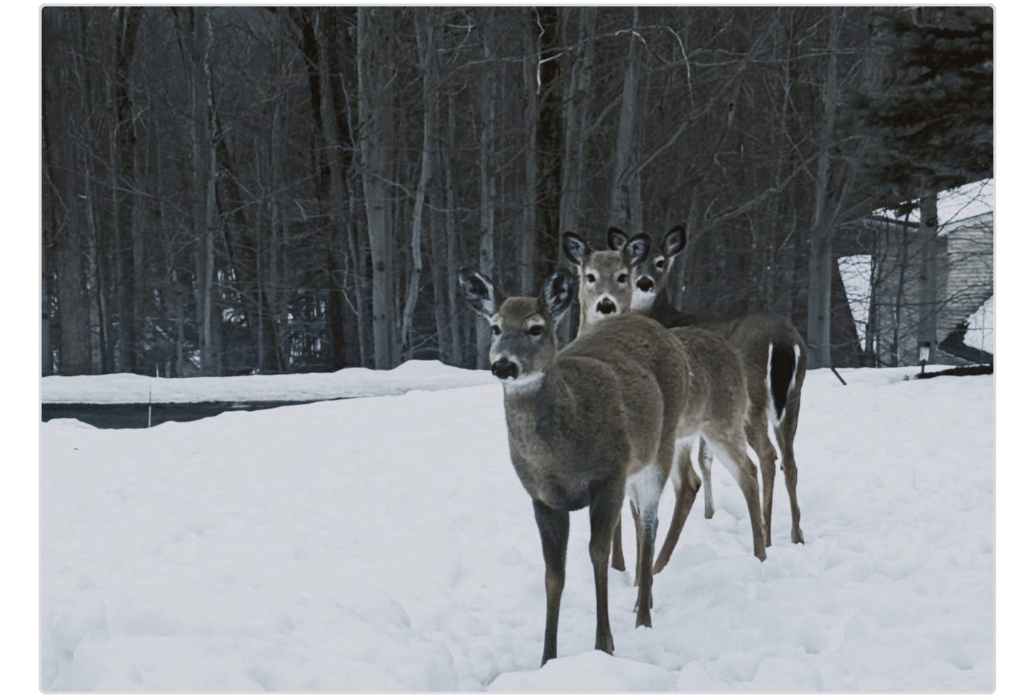 We debate politics, laugh about nothing in particular, and wait for the deer to pay us a visit.