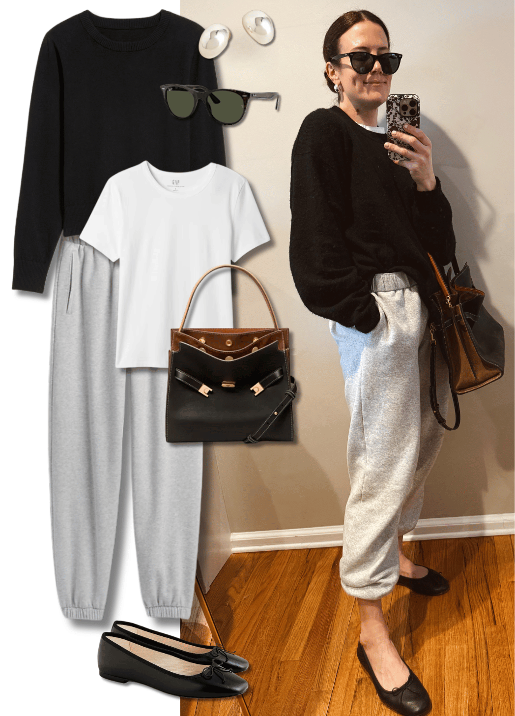 The aviator glasses look so great on you, and you truly have perfected the art of dressing for slow days with style. Love the sweats with ballerina flats. 🥿