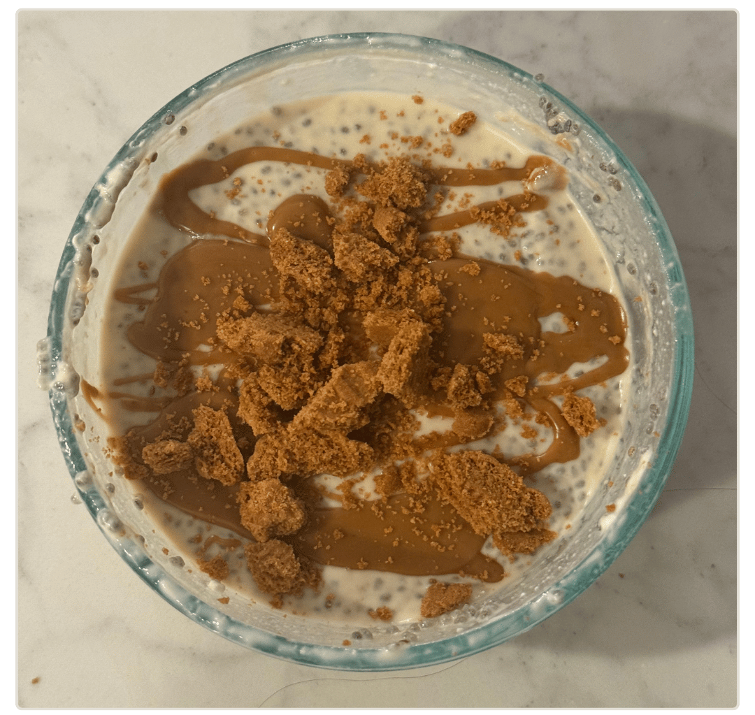 3. EATING: CHIA SEED PUDDING - This could be a texture issue for some, however, this cookie butter–infused chia seed pudding was outstanding. I only used 1 tbsp of syrup, and it was the perfect fiber-fueled treat.