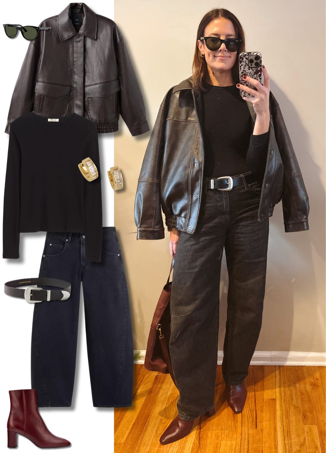 When the world feels chaotic, I crave simplicity. A little black monochromatic look, a pop of burgundy in my boot, and a leather bomber to call it a day.